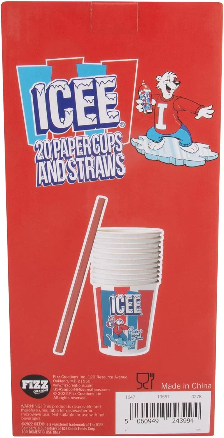 Introducing the ICEE Paper Cups & Straws, the perfect combo for your refreshing frozen treats! Each pack comes with 20 paper cups and matching straws. Sip and enjoy your favorite ICEE flavors in style. Quench your thirst and add a touch of fun to your summer parties with the ICEE Paper Cups & Straws pack!