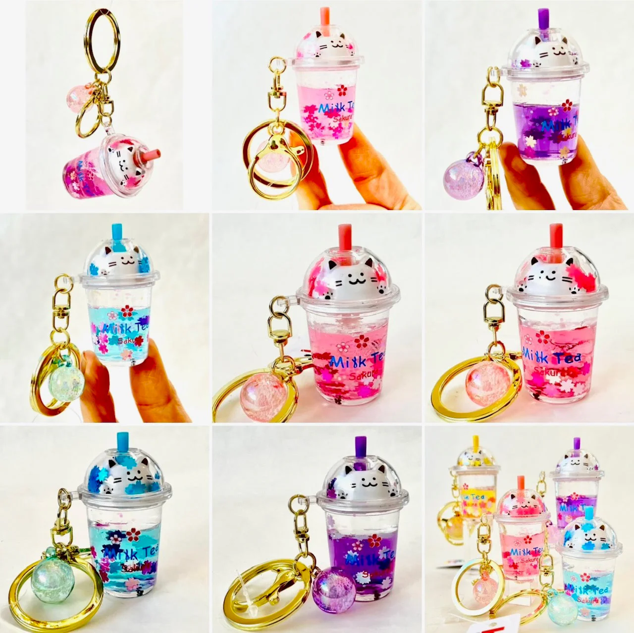 12078 KITTY BOBA MILK FLOATY KEY CHARM. 2½āx1½āx1½ā.